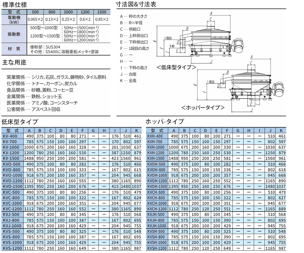 ふるい機の設置スペースが狹い場所で異物除去を目的としたふるい機です。また、ホッパータイプにすると直下型になるため、大量処理が可能になります。