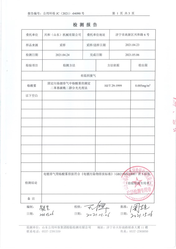 2021年4月9#排氣筒鉻酸霧檢測(cè)報(bào)告