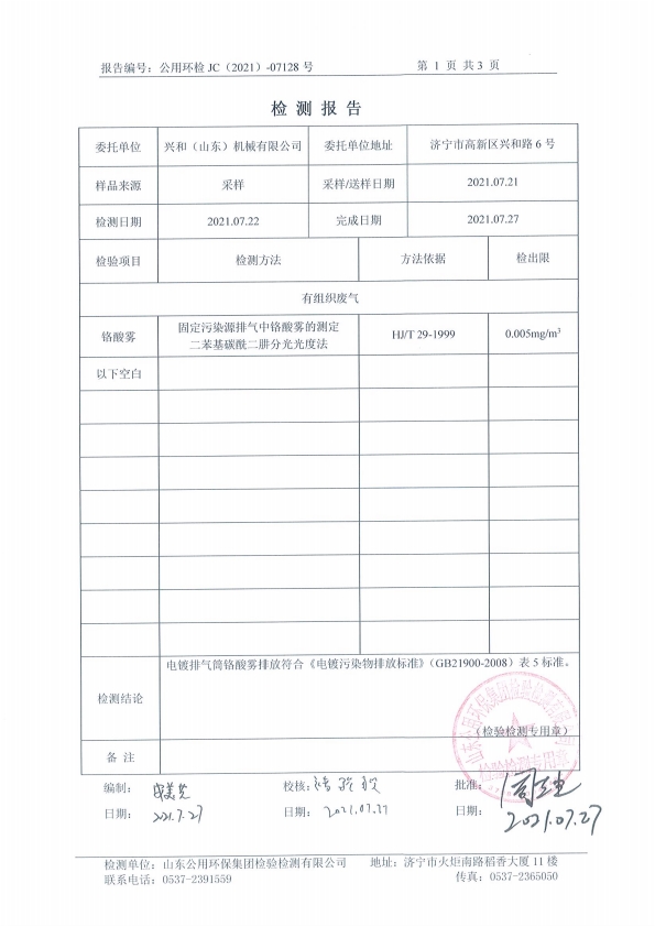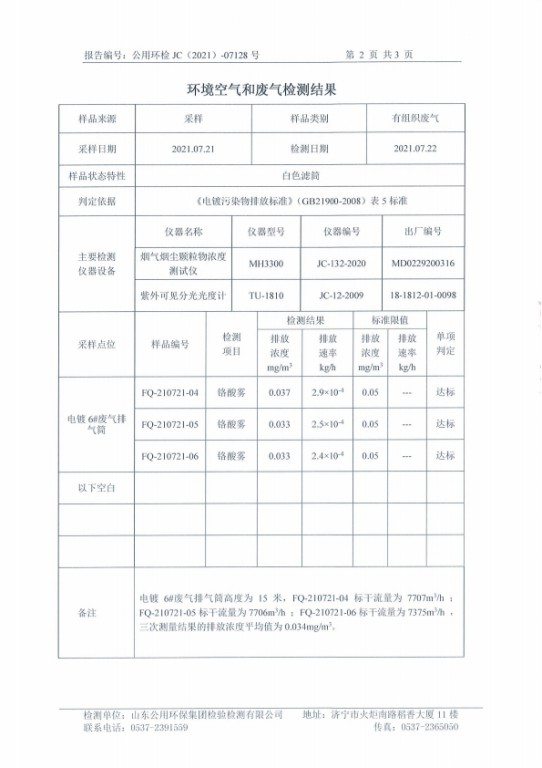2021年7月鉻酸霧6#排氣筒——鉻酸霧檢測(cè)報(bào)告