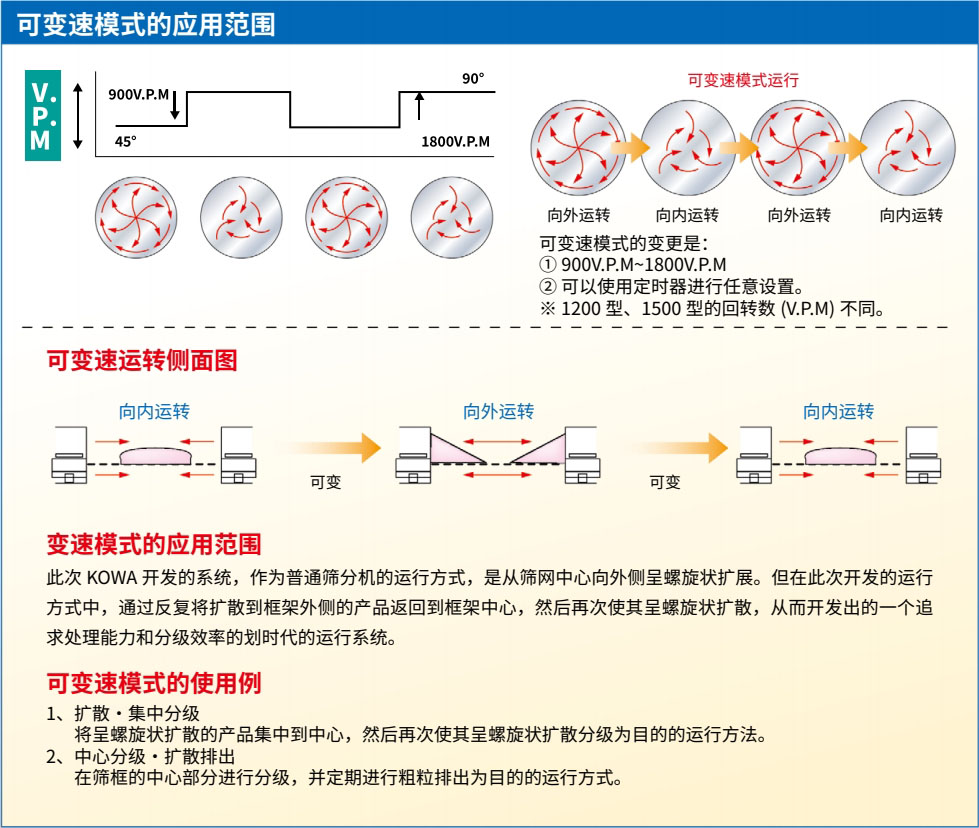 可對應(yīng)全機(jī)種(KV、KI、KL 除外);在連續(xù)運(yùn)行中分級精度 10%UP;通過改變轉(zhuǎn)速 以改變流動方式