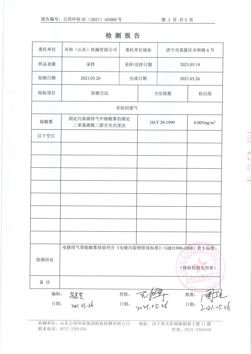 2021年5月8#排氣筒鉻酸霧檢測報告