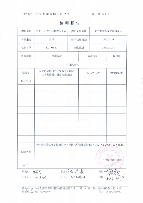 2021年8月鉻酸霧7#排氣筒—鉻酸霧檢測(cè)報(bào)告