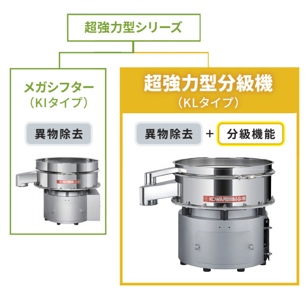 超強力型振動ふるい機のラインナップに 分級機能 を新たに追加!!
